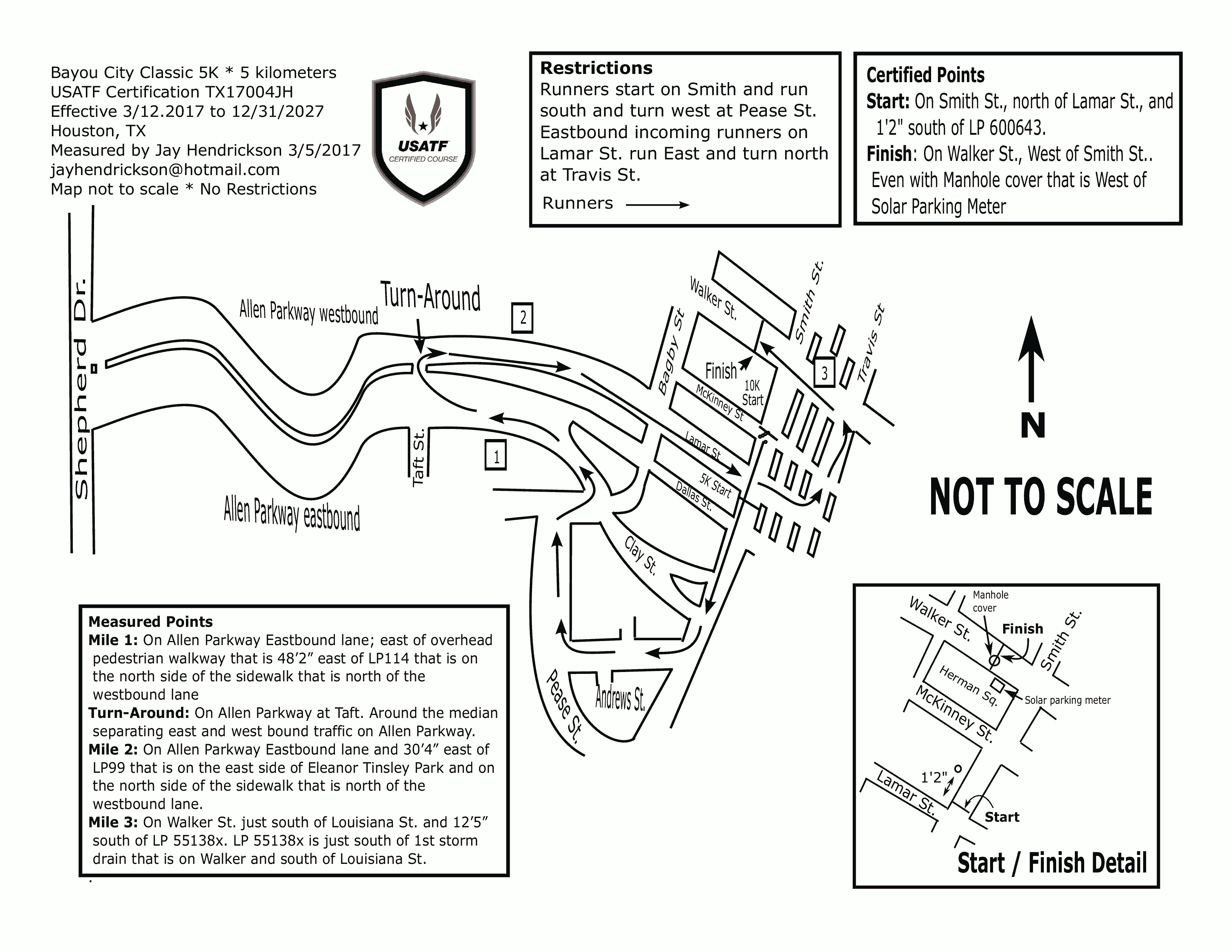 The race takes place in Downtown Houston. The Finish Lines for the two races is on Walker Street by City Hall.